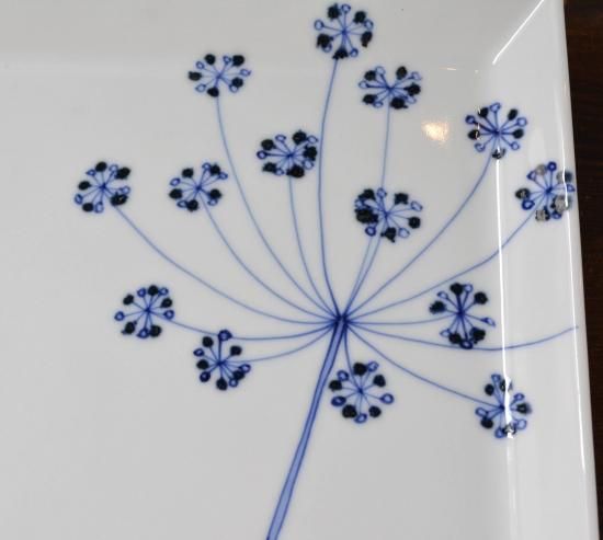 瀬戸染付 眞窯 大角皿 レースフラワー