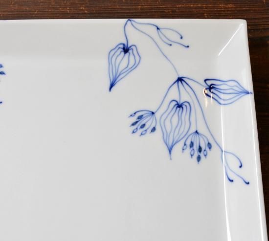 瀬戸染付 眞窯 32cm長角皿 シオデ/レースフラワー