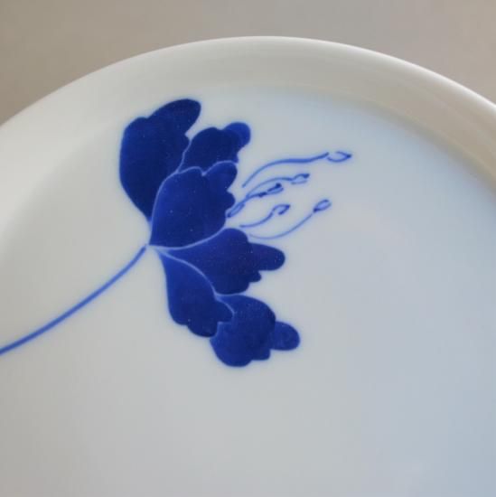 瀬戸染付 眞窯 オーバル5.0皿 レインリリー