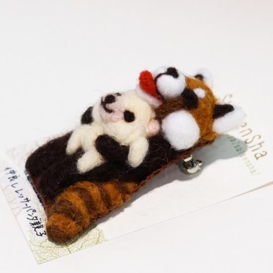 水仙舎 フェルトブローチ 仲良しレッサーパンダ親子