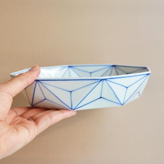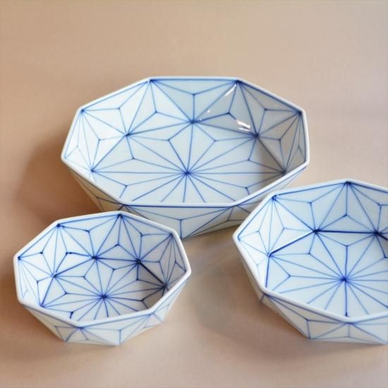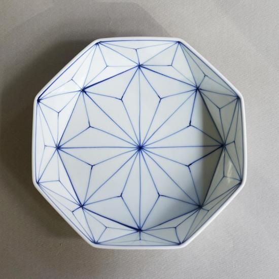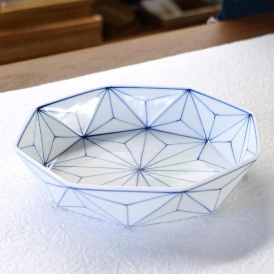 瀬戸染付 眞窯 麻の葉八角鉢 大