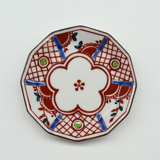 九谷焼の特徴は、緑、黄、赤、紫、紺青の五彩の上絵具で絵付けした独特の色彩にあります。