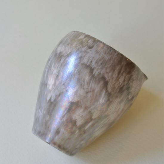 まず素焼きし、次に釉薬をかけて焼成、最後にラスター釉をかけて焼成、と三回焼いてこの器がつくられています。