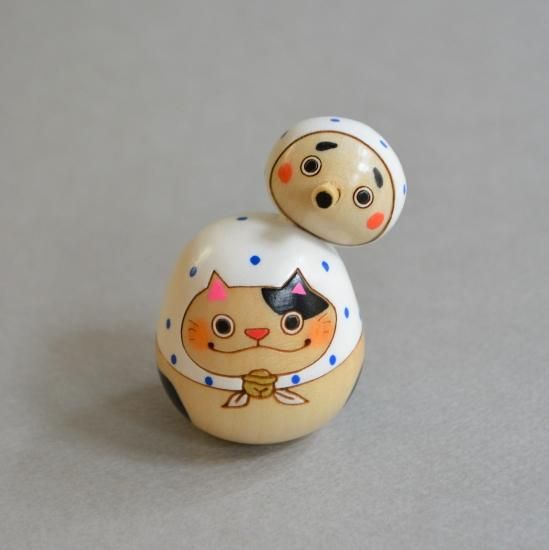 kokechi 猫にひょっとこ青 縁起物こけし