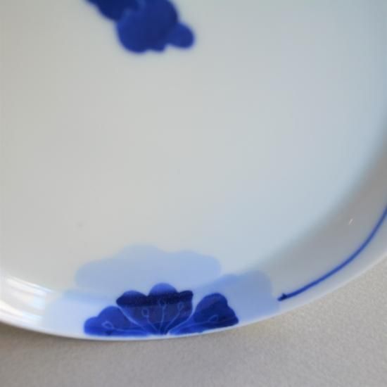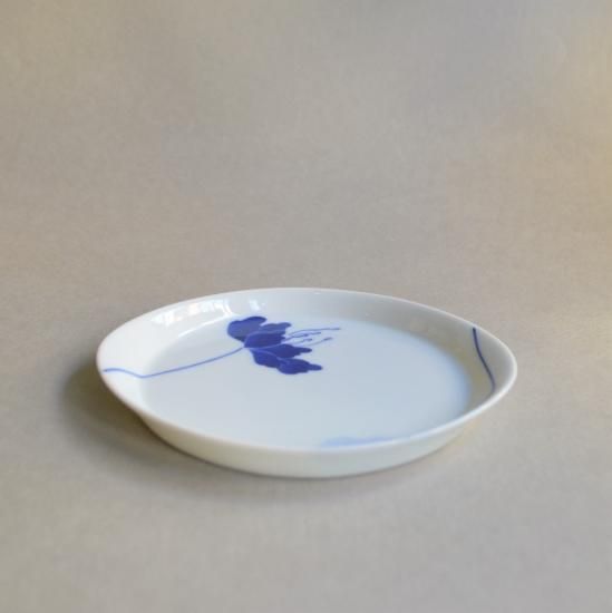 瀬戸染付 眞窯 オーバル5.0皿 レインリリー
