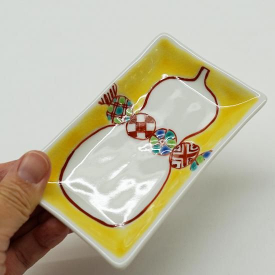 九谷焼の特徴は、緑、黄、赤、紫、紺青の五彩の上絵具で絵付けした独特の色彩にあります。