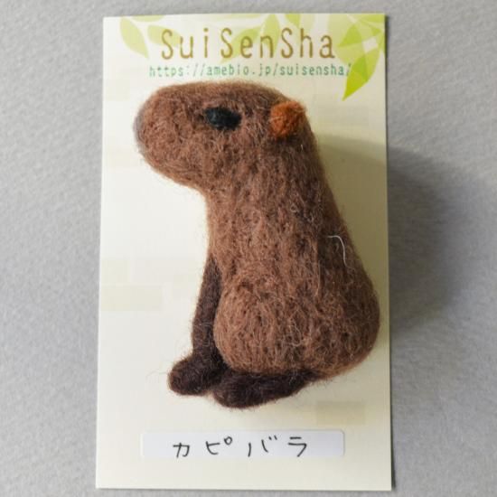 手作りの羊毛フェルトブローチ、「水仙舎」。リアルで愛らしいカピバラを再現。温かみ溢れる立体感が魅力。洋服や小物に合わせて愉しむ。