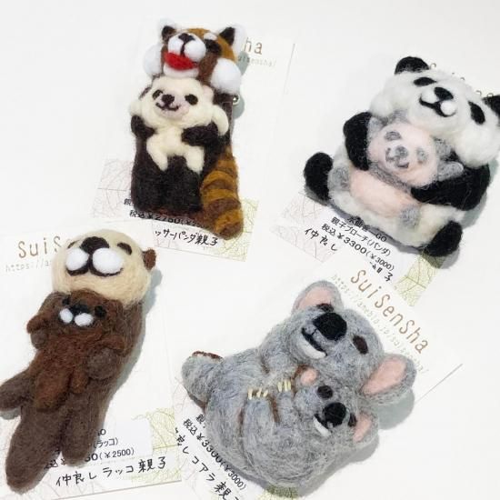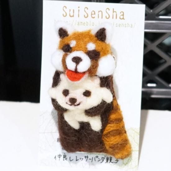 水仙舎 フェルトブローチ 仲良しレッサーパンダ親子