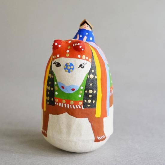 この起き上がり人形は、裏張りの技法によって岩手県で製作している張り子玩具です。