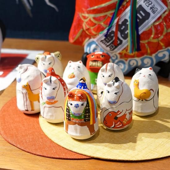 和紙の風合いが素朴で、ひとつひとつ手描きされた表情の愛らしさが魅力。