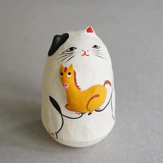 この起き上がり人形は、裏張りの技法によって岩手県で製作している張り子玩具です。