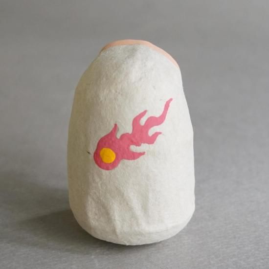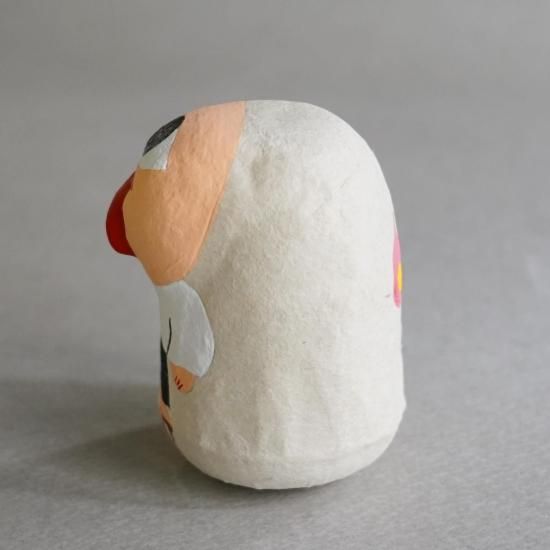 この起き上がり人形は、裏張りの技法によって岩手県で製作している張り子玩具です。