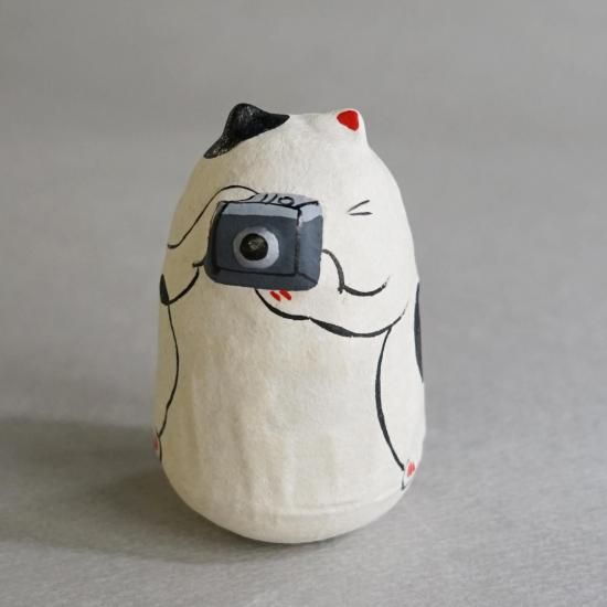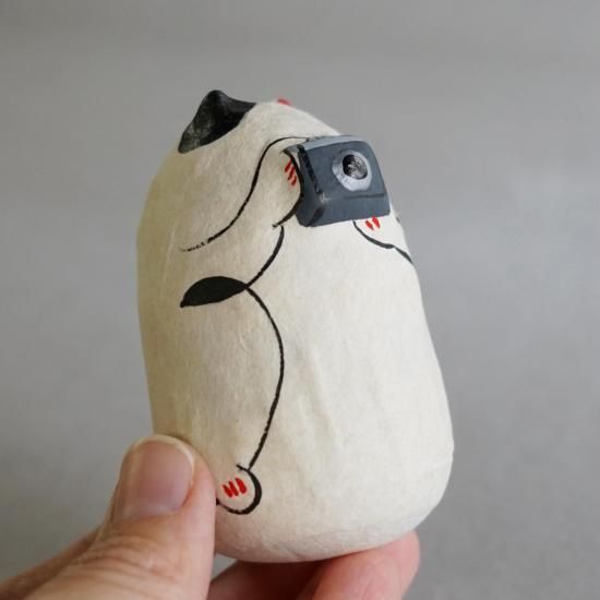 この起き上がり人形は、裏張りの技法によって岩手県で製作している張り子玩具です。