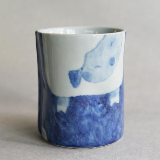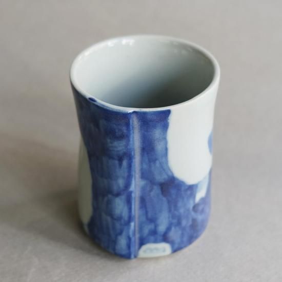 板状の生地をぐるっと巻いて作ったような形状の湯呑で、生地の重なった部分のトジメがデザインのアクセントになっています。大きすぎず使いやすいので日常使いにおすすめです。